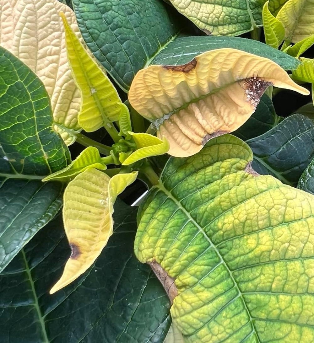 It’s time to get your poinsettia crops past the finish line and out the door. There has a myriad of disease issue on poinsettias this growing season including bacterial soft rot, Pythium and Phytophthora root rots, Rhizoctonia stem rot, Alternaria leaf spot, powdery mildew and Botrytis to name a few. As bracts are coloring and temperatures are cooling, it is important to watch for anything that may damage the bracts. Calcium deficiency and Botrytis are two major issues that can cause bract burn and unmarketable plants.