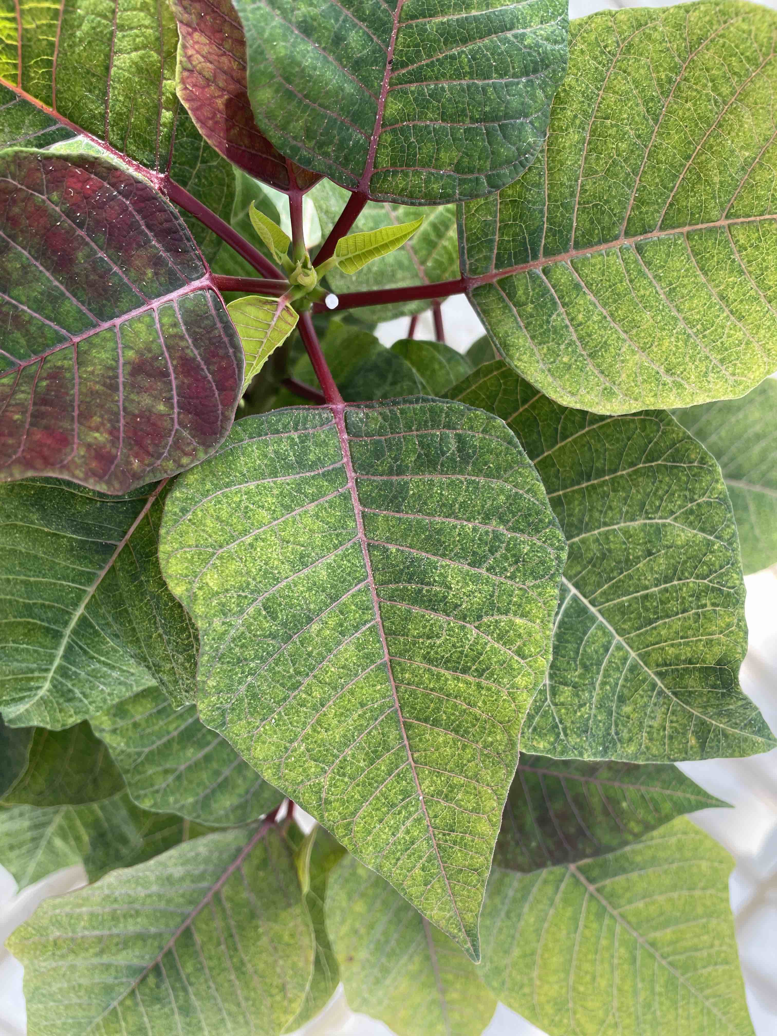 Lewis mite is back with a few reports in poinsettias this fall. These small spider mites generally feed on leaf undersides causing a faint stippling easily overlooked as a nutrition issue or normal color break as bracts start. Overlooked, that is, until mite levels have become very high and it’s clear something else is going on. The timing unfortunately often coincides with dense foliage, closely spaced plants, expanding bracts and longer stems that easily break. Many years ago we ran a couple of trials comparing several miticide treatments. Avid and Akari (low rates) were among the most effective, followed by Floramite and Shuttle O (lowest label rates). Hexygon (low label rate) was much less effective in this trial; it is normally best used early in an infestation. Higher labeled rates for these would likely provide better control. Pylon (low and high label rates for mites) didn't work quite as well as expect, a surprise since the latter is known to be very effective against a range of different kinds of mites. Several other miticides worthy of evaluation haven’t been tested in our trials but may be effective rotation options. Growers have sometimes commented on less-than-expected results with treatments including those we’ve seen work well in the past. Issues in some cases include difficulty in getting good coverage, extremely high mite populations to start with, and possibly low label rate used. Check under leaves several days after application, comparing areas with best coverage to other areas, using good magnification to look for dead and live mites. When mite levels are extremely high, as they often are when detected, repeat applications and short rotation intervals using higher rates and products with different modes of action are usually necessary, but note label restrictions on numbers of applications per crop cycle. Incidentally, we found Lewis mites surviving on cuttings after rooting under mist, despite the constantly wet conditions that usually disfavor spider mites. (Image shows Lewis mite stippling on poinsettia leaves)